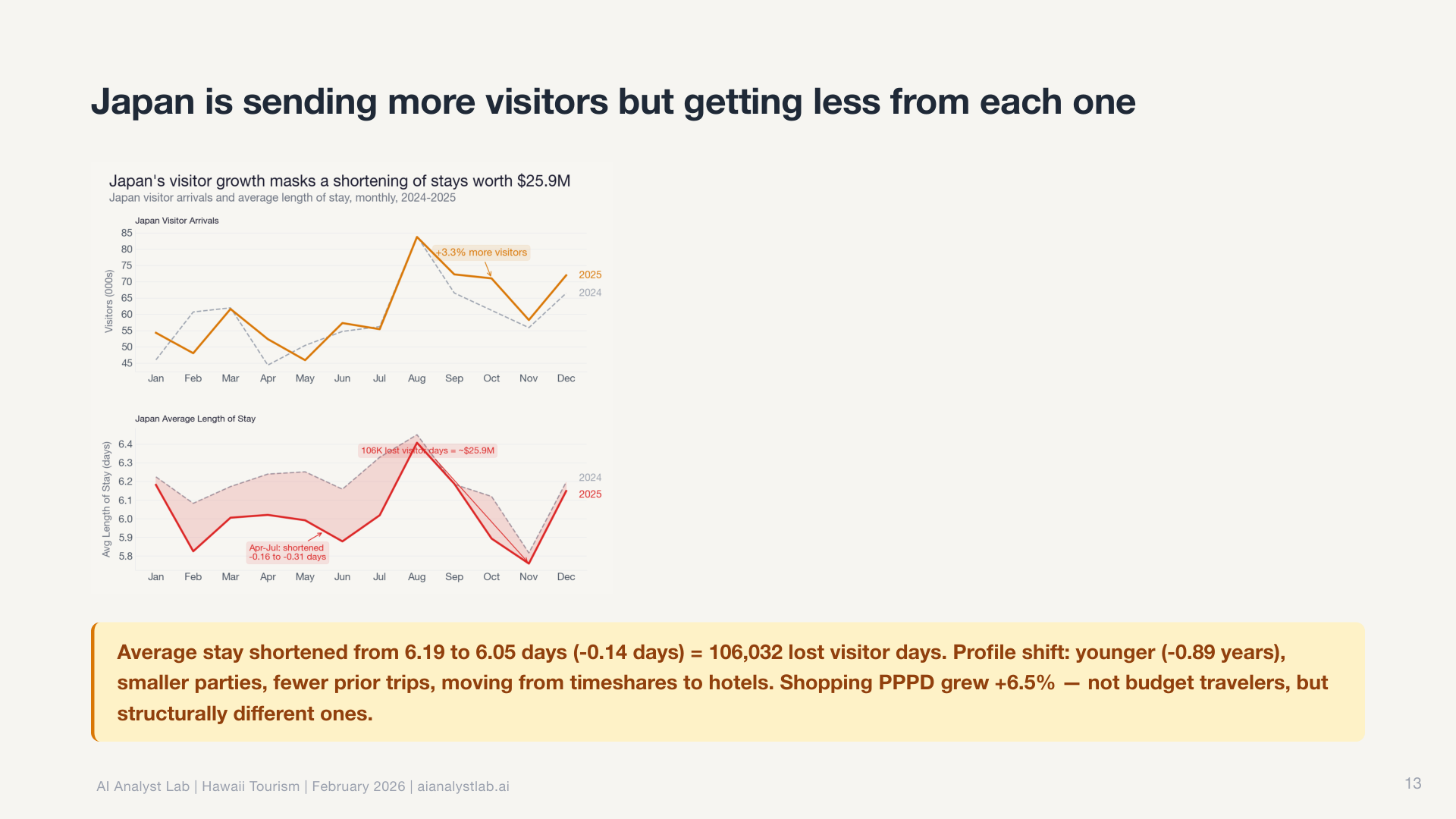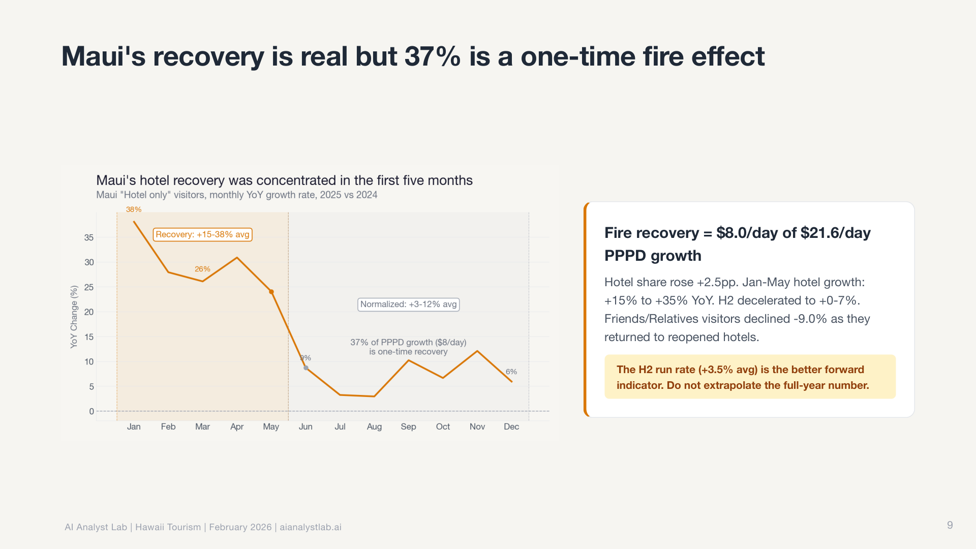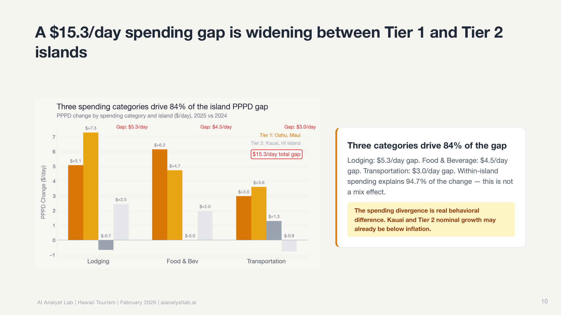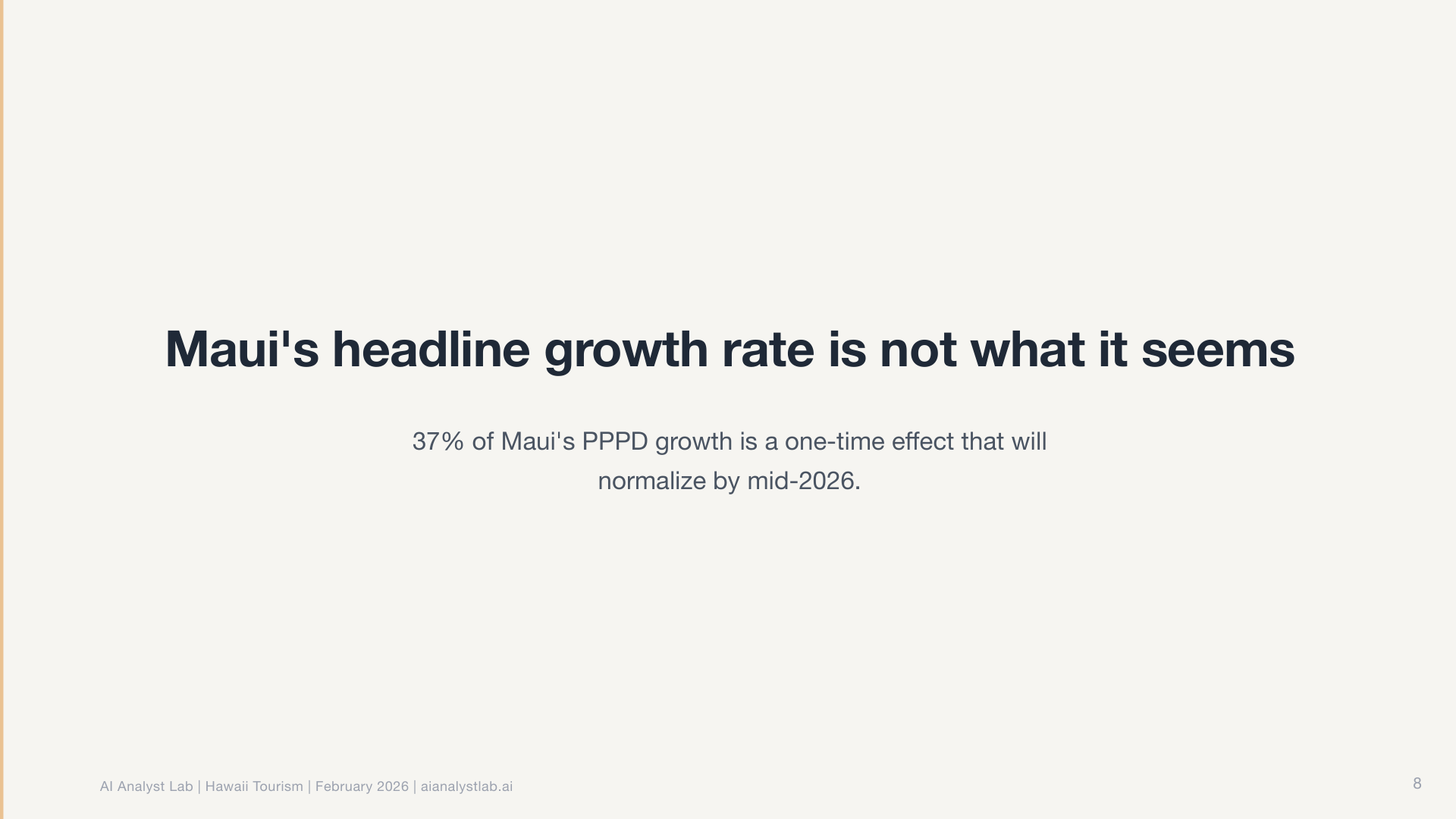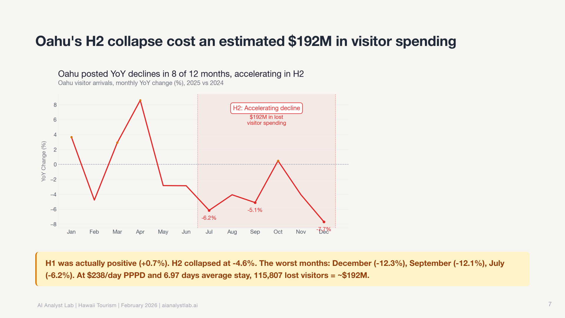 In the Hawaii data, the statewide visitor count was essentially flat. Down 0.4% year over year. Most tools would report “no significant change” and move on.